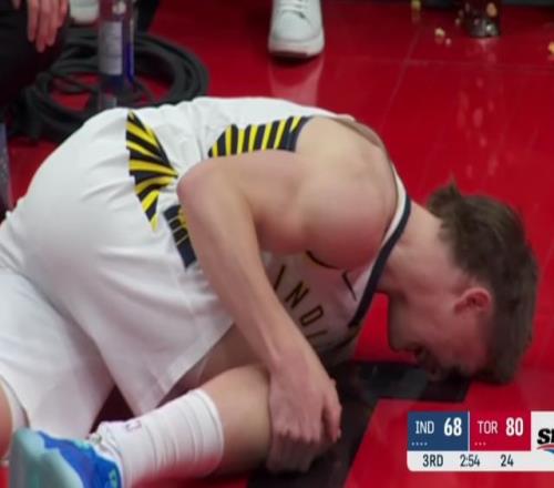 弗菲是2024年NBA選秀第35順位球員,他在客場不敵猛龍的比賽中,一次扣籃落地時姿勢失衡導致受傷。這位二年級鋒線球員當即捂住右膝,痛苦不堪,全隊都圍了過來,當時就能看出傷勢很嚴重??吹疥犛言庥鲋貍?,已經(jīng)賽季報銷的哈利伯頓表情痛苦。主帥卡萊爾也是神情沮喪。
