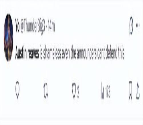 雷霆球迷:里夫斯的造犯規(guī)簡(jiǎn)直無(wú)恥至極,就連解說員都無(wú)法為他辯解了。