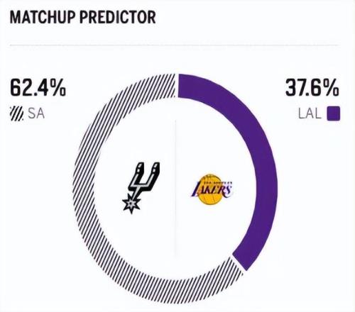 賽前,美媒ESPN對本場比賽進(jìn)行了勝率預(yù)測,湖人隊勝率僅有37.3% ,馬刺勝率則高達(dá)62.7% ,差距非常明顯。
