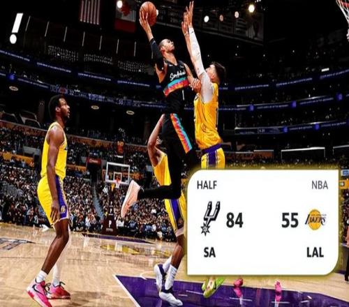 次節(jié)回來,哈珀連續(xù)反擊空接暴扣得手,馬刺打出6-0領(lǐng)先到23分。拉拉維亞突破上籃命中,拿到湖人全隊最高10分,但剛開局已經(jīng)身背4犯。文班亞馬補(bǔ)籃得手,馬刺次節(jié)轟出15-4已經(jīng)領(lǐng)先湖人28分。海耶斯轉(zhuǎn)身勾手命中,文班亞馬中距離跳投再中,目前13中10已經(jīng)砍下31分,馬刺70-40領(lǐng)先湖人30分。海斯迎著文班亞馬投進(jìn)本賽季第2記三分,目前5中4拿到9分??ㄋ?fàn)枤埍┐竺卑舜鍓?,落地后摔到后腰,表情痛苦,被替換下場返回更衣室檢查。半場戰(zhàn)罷,馬刺84-55領(lǐng)先湖人29分。