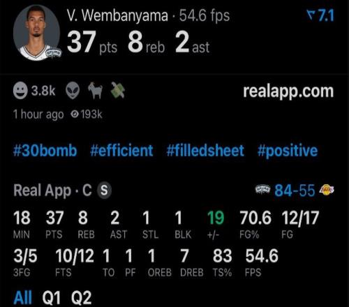 文班亞馬脫下袈裟大開(kāi)殺戒,直接就把湖人當(dāng)日本人整,開(kāi)場(chǎng)8分鐘,9投8中,轟下25分3板;