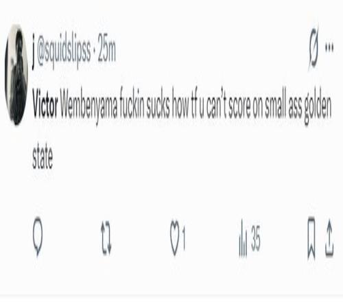 三節(jié)打完還有刺蜜對文班亞馬的表現(xiàn)不滿:文班亞馬太爛了,他竟然無法在勇士的矮子陣容里面得分。