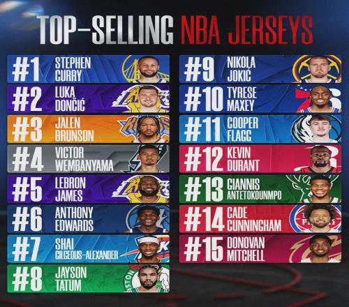 最新一期的官方新秀榜,弗拉格依然排名第一。再看一組數(shù)據(jù),2025-26上半個賽季球衣銷量排行,弗拉格排名第11,力壓杜蘭特和字母哥。而且弗拉格最近的表現(xiàn)比之前更出色,等到賽季結(jié)束時,他的球衣銷量很可能沖進前十。