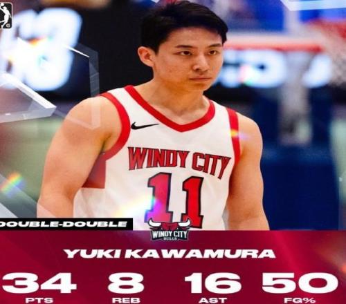 2月12日,NBA發(fā)展聯(lián)盟比賽中,河村勇輝狂砍34分8籃板16助攻,他也是聯(lián)賽歷史唯一取得類似數(shù)據(jù)的球員。