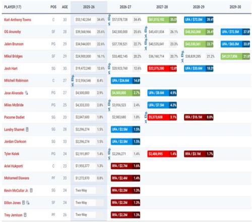 尼克斯原本就是14+3名單他們?cè)诘人鳚h度過(guò)澄清期,一旦簽下索漢后全新的15+3名單就出爐:布倫森、唐斯、阿奴諾比、布里奇斯、哈特、米羅、阿爾瓦拉多、邁克布萊德、沙梅特、克拉克森、科萊克、迪亞瓦拉、胡克波爾蒂、索漢、達(dá)迪耶;杰米森、瓊斯、麥卡勒(三個(gè)雙向合同)。