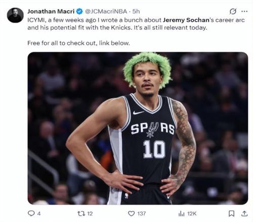 尼克斯隊(duì)記喬納森-麥克瑞寫(xiě)道:幾周前我就撰寫(xiě)過(guò)杰里米-索漢的生涯發(fā)展軌跡與他跟尼克斯契合度的文章,如今這些內(nèi)容依舊有參考價(jià)值,他的確很適合我們。