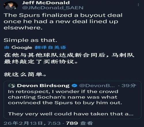 索漢實(shí)際上從去年12月9日開(kāi)始就被米奇多次DNP,場(chǎng)均也只有10分左右的登場(chǎng)時(shí)間,在他得知自己不再是馬刺未來(lái)的一份子后他率先找到管理層溝通,他的團(tuán)隊(duì)找到尼克斯談妥了加盟事宜后,馬刺隊(duì)順理成章的裁掉他。