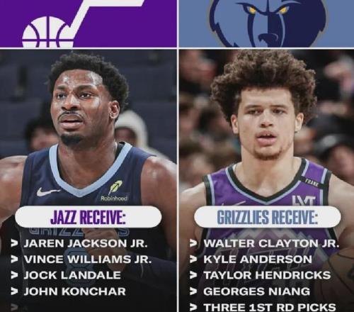 今年交易截止日前,爵士送出克萊頓+李凱爾+亨德里克斯+尼昂+三個(gè)首輪簽,從灰熊挖來(lái)3J+孔查爾+蘭代爾+小威廉姆斯。