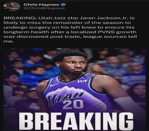 “3J”小賈倫-杰克遜將接受手術(shù),切除左膝一處局部色素沉著絨毛結(jié)節(jié)性滑膜炎增生組織,可能賽季報(bào)銷(xiāo)......