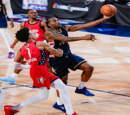 很難想象這樣的球員,竟然會進(jìn)不去全明星,最后還是遞補(bǔ)進(jìn)去的。這樣的全明星強(qiáng)度,也是倫納德最喜歡的。今年全明星堪稱是20年最后一節(jié)之后強(qiáng)度最大的一次,那次真的可以說是季后賽強(qiáng)度,倫納德的舒適區(qū)。