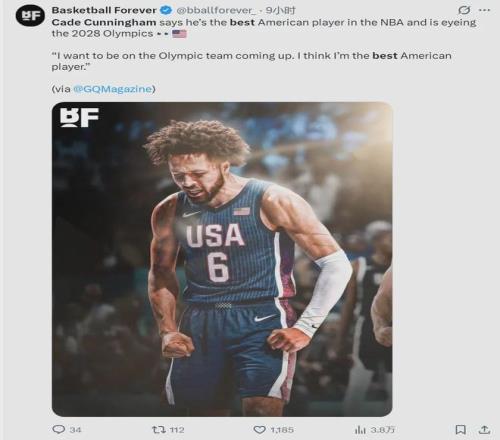 最新一期的NBA官方MVP排行榜,坎寧安依然位列第四,聯(lián)盟前三分別是:亞歷山大、東契奇和約基奇。近日坎寧安接受媒體采訪時(shí)說(shuō)道:“我想代表美國(guó)男籃出戰(zhàn)2028年洛杉磯奧運(yùn)會(huì),我覺(jué)得自己是NBA聯(lián)盟最好的美國(guó)球員!”