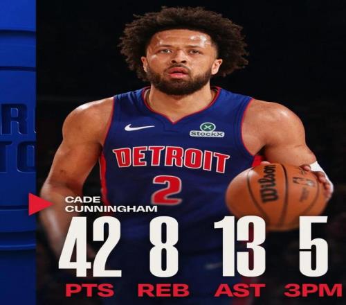 ——坎寧安是2009年詹姆斯之后,第一位做客麥迪遜花園拿下40分+10助攻的球員,同時(shí)也是活塞隊(duì)史第一個(gè)做到這一點(diǎn)的球員