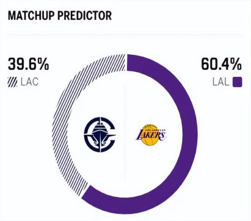 賽前,美媒ESPN對本場比賽進行了勝率預(yù)測,快船隊勝率僅有39.7%, 湖人勝率則高達60.3% ,差距非常明顯。