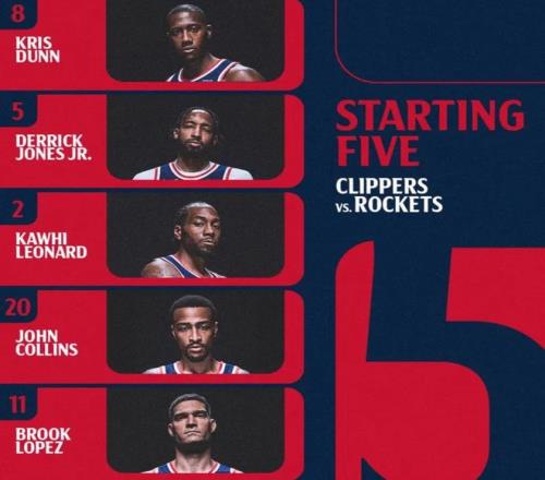首發(fā)陣容方面,湖人隊這邊,全員健康,雷迪克教練排出的首發(fā)五人組為:馬庫斯-斯馬特、勒布朗-詹姆斯、德安德烈-艾頓、奧斯汀-里夫斯、盧卡-東契奇;快船這邊,比爾(左臀骨折)賽季報銷、新援加蘭(右腳扭傷)歸期未定、博格丹諾維奇也因傷缺陣,首發(fā)陣容則為:科懷-倫納德、約翰-科林斯、布魯克-洛佩斯、德里克-瓊斯、克里斯-鄧恩。