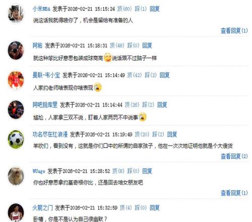 楊瀚森進(jìn)一步表示:“這也是比賽的一部分,約基奇今天也有兩罰不中的情況,我一直在盯著呢,哈哈!”只是楊瀚森的如此回應(yīng)卻引發(fā)一眾網(wǎng)友的不滿(mǎn),認(rèn)為他是在抖機(jī)靈。