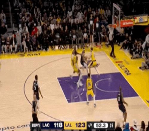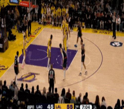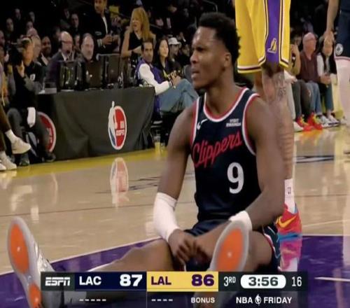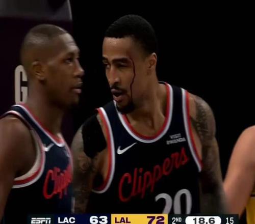 就在中場快結(jié)束時,快船的追分出了意外