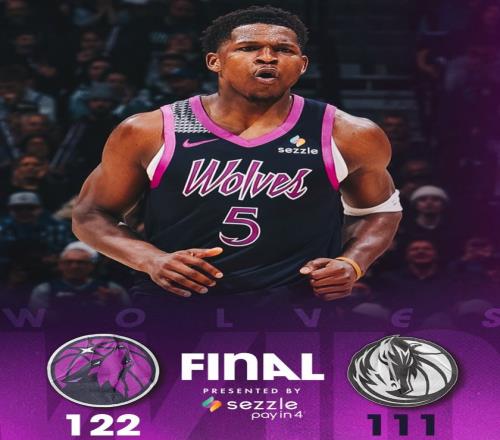 愛德華茲瘋狂出手30次命中16球,三分13中5,拿到40分6籃板1助攻1搶斷,他幫助森林狼大勝獨行俠,此役后森林狼勝率61.8%僅比湖人少0.04%的勝率排在西部第六。