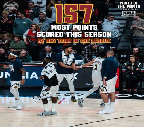 掘金157-103狂勝開拓者,這場比賽掘金贏球后與湖人的勝場差還有0.5場,此役掘金單場157分創(chuàng)造隊史單場新高,凈勝分54分也是隊史單場新高,背靠背凈勝54分是NBA歷史新高。這場比賽約基奇32+9+7+4斷三節(jié)打卡。