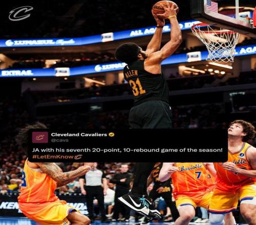 其中第一節(jié)剛開始,賈萊特阿倫就火力全開,他一人包攬了騎士全隊前11分里的8分,單節(jié)打完已經(jīng)拿到11分3籃板,期間順下吃餅、二次進攻甚至還秀了一把中投;