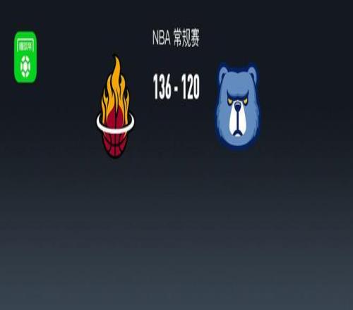 第四節(jié)熱火阿德巴約拿下7分,灰熊GG-杰克遜拿下8分,最終熱火136-120戰(zhàn)勝灰熊