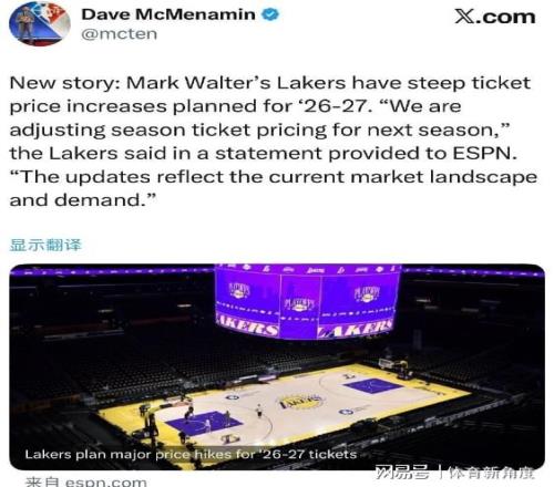 嘿,各位球迷朋友們!今天NBA圈里可炸開鍋啦,知名記者Dave McMenamin就像個爆料大俠,甩出一篇猛文,說馬克·沃爾特掌舵的湖人隊,打算在2026 - 27賽季給票價來個大變身,直接“坐火箭”!
