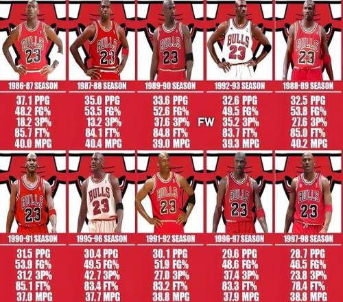 第五,邁克爾·喬丹的10次得分王,得分統(tǒng)治力的終極體現(xiàn)。7連莊+復(fù)出再拿3次,這種中途退役復(fù)出還能統(tǒng)治得分榜的能力,現(xiàn)如今真的無(wú)人能比?,F(xiàn)役杜蘭特最多才4次,如今得分高手遍地走,當(dāng)家球星擁有無(wú)限開火權(quán)后,場(chǎng)均25+一抓一大把,得分王最后拼的就是小數(shù)點(diǎn),10次得分王,注定后無(wú)來者的存在。