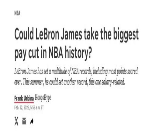 北京時間2月23日,知名美媒HoopsHype表示,詹姆斯下賽季可能會大幅降薪,甚至創(chuàng)下NBA歷史降薪紀(jì)錄。以下是該媒體的解析——