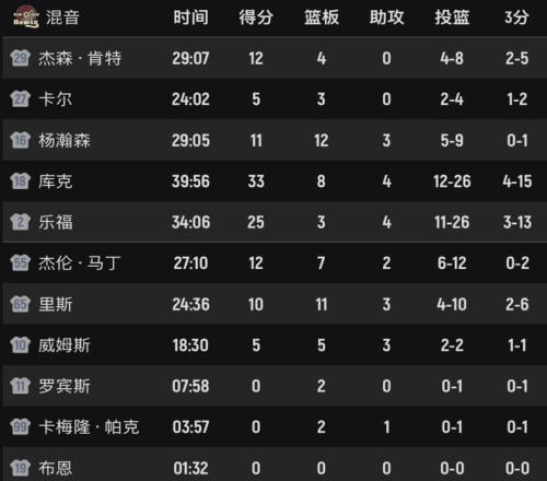 混音隊的進(jìn)攻效率開始下降,樂福只想著自己攻,不尋求配合,有點獨啊,楊瀚森沒有投籃出手機會。只剩2分多鐘時,混音落后12分。楊瀚森摸不到球,樂福跟庫克輪番單打。比賽最后時刻,楊瀚森補扣得分?;煲絷犇孓D(zhuǎn)失敗,以113-118失利。