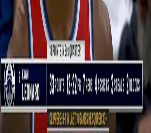 根據(jù)數(shù)據(jù)統(tǒng)計(jì),在最近萊昂納德單場突破30分的比賽中,快船的戰(zhàn)績是9勝2負(fù)(圖片中的數(shù)據(jù)是轉(zhuǎn)播方在比賽期間給出的,不算上本場比賽)。此役,萊昂納德25投14中,得到37分8籃板4助攻。