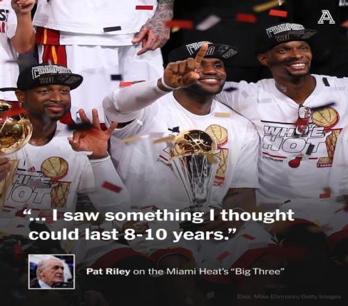 在洛杉磯湖人為帕特·萊利揭幕雕像后的新聞發(fā)布會上,萊利回顧了自己執(zhí)掌熱火打造的“三巨頭時代”。那段時期的熱火擁有了詹姆斯、韋德、波什的豪華組合,連續(xù)四年打進總決賽,并兩次拿到總冠軍。萊利表示,他理解詹姆斯在2014年離開邁阿密的決定,但也坦言自己“有些自私地希望”詹姆斯能再多留幾年。