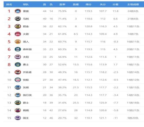 雷霆贏球后2連勝,戰(zhàn)績(jī)44勝14負(fù),排名西部第一,領(lǐng)先第二的馬刺3個(gè)勝場(chǎng)。