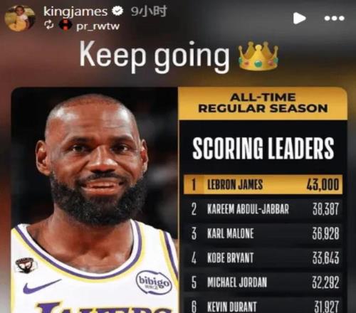 生涯新突破!詹姆斯解鎖43000分唯一成就,興奮轉(zhuǎn)發(fā)里程碑時刻