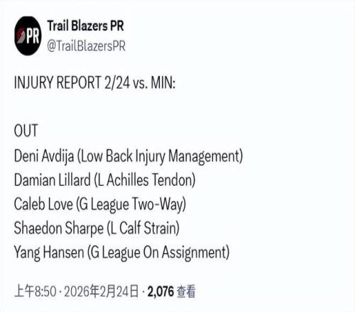 北京時(shí)間2月24日,根據(jù)開拓者的最新傷病報(bào)告,楊瀚森明日將繼續(xù)出戰(zhàn)G聯(lián)賽,代表混音隊(duì)再戰(zhàn)圣克魯斯勇士。開拓者官方也連續(xù)宣布了兩項(xiàng)與楊瀚森相關(guān)的活動(dòng)。