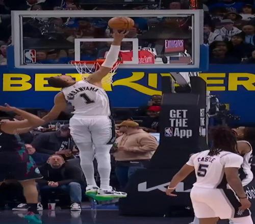 杜倫這身體素質(zhì)也是夠橫的,趁著文班亞馬轉(zhuǎn)身不及,直接來了個(gè)殺人誅心的霸氣隔扣2+1!