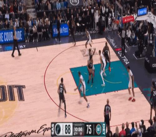 坎寧安轉(zhuǎn)身過掉瓦塞爾后,籃下直面文班,一個(gè)膽大心細(xì)的高拋投,直接吃了文班亞馬一個(gè)變態(tài)辣的火鍋