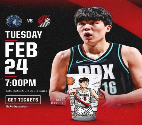 但隨后開拓者的一個決定,讓大家看到了他們火速找回楊瀚森的原因。就在今天,開拓者宣布,球隊(duì)將在下一場主場對陣森林狼的比賽中舉辦“楊瀚森玻璃杯之夜”。這是個什么活動,開拓者介紹說,是指前5000名到場的觀眾,將獲得一個楊瀚森的紀(jì)念玻璃杯。同時開拓者官網(wǎng)和現(xiàn)場也將上售賣同款玻璃杯,售價是6.99美元。