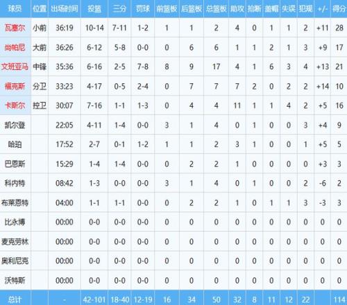 文班亞馬(23屆狀元)防守端影響力巨大,屢次讓21屆狀元坎寧安吃癟,后者全場出手26次僅中5球得到16分6板10助2斷3帽,正負(fù)值-18全隊(duì)最低。