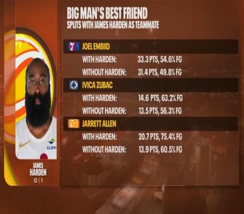并且這樣的現(xiàn)象并非偶然,過去數(shù)個賽季與哈登搭檔的內線球員在數(shù)據(jù)與效率方面均有提升,從76人的恩比德到快船的祖巴茨,再到如今騎士的艾倫一直如此。