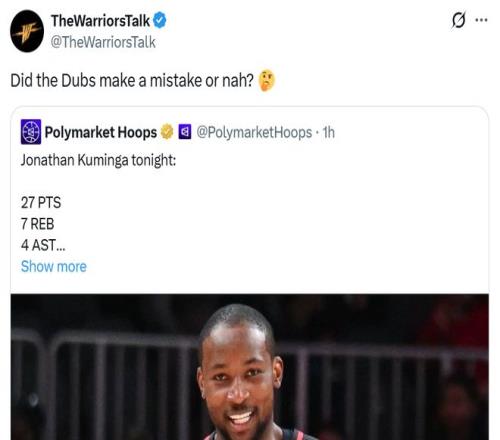 后勇士媒體TheWarriorsTalk也質(zhì)疑到:“勇士隊(duì)是不是犯了一個(gè)錯(cuò)誤(交易庫(kù)明加)?”