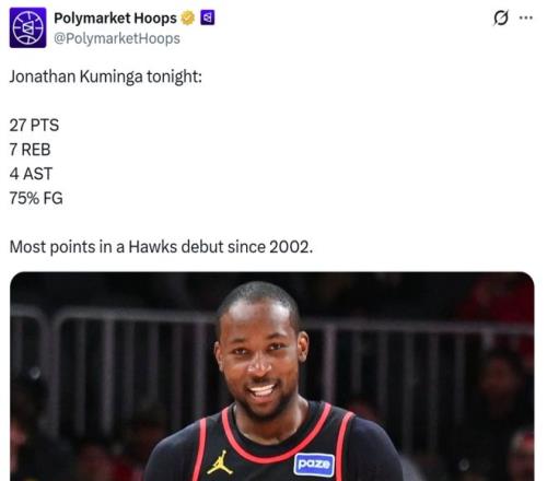 相比于特雷楊重回老東家的傷感,加盟新東家的庫(kù)明加則是揚(yáng)眉吐氣,首秀就打破塵封24年之久的隊(duì)史紀(jì)錄。