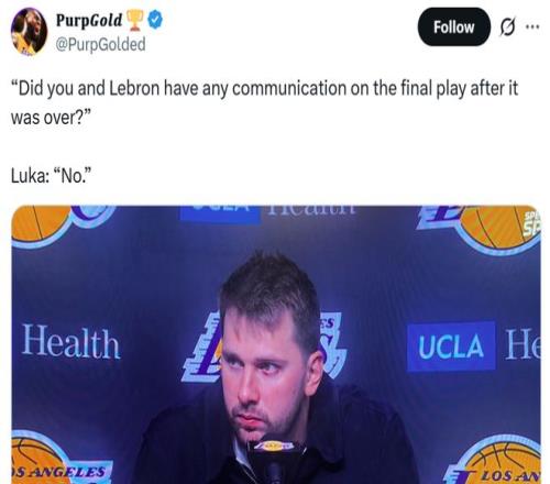 最后被問及賽后是否有和詹姆斯溝通時(shí),東契奇明確表示:“沒有。”