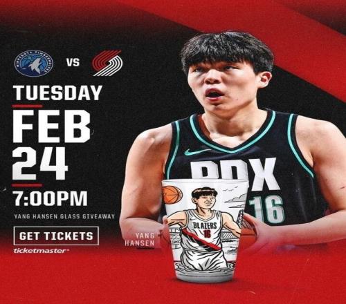 開拓者主場不敵森林狼。開拓者官方賽前宣布,球隊(duì)將在主場舉辦楊瀚森玻璃杯之夜,前5000名到場的觀眾將獲得一個(gè)楊瀚森紀(jì)念玻璃杯。但楊瀚森目前已被球隊(duì)下放至G聯(lián)盟。