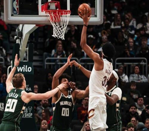 兩隊維持10分左右差距僵持幾分鐘,阿倫暴扣吹響反撲號角,施羅德?lián)寯喾磽簦S后助攻托布強攻,加上埃利斯的三分球,騎士一波10-0追到只差2分。波蒂斯又進三分球,節(jié)末托布和埃利斯扛起進攻大旗,三節(jié)打完,騎士94-93反超雄鹿。決戰(zhàn)第四節(jié),埃利斯和托布繼續(xù)上分,AJ格林和希姆斯帶隊反超,阿倫勾手+造犯規(guī)重新拿回領先優(yōu)勢。最后5分鐘,兩隊比分交替上升,施羅德關鍵兩罰追平,羅林斯連拿4分。泰森罰球命中后,施羅德高難度拋投追平!最后1分鐘,小波特后仰跳投,施羅德打鐵,阿倫勾手壓哨打進!
