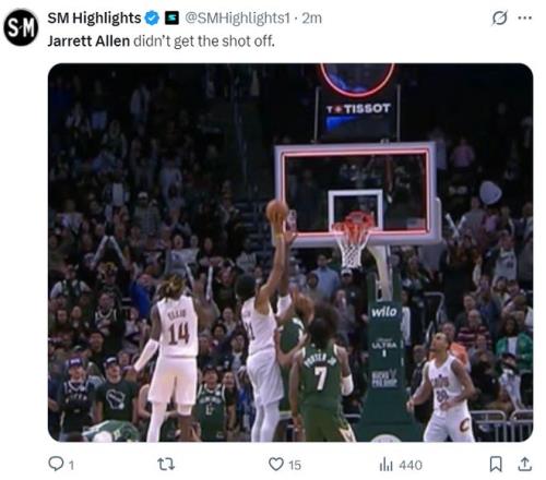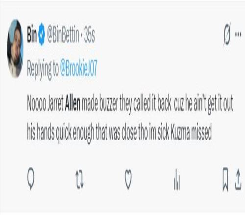 騎士球迷對阿倫的絕平超時非常難過,他表示NO~阿倫還沒有把球跑出去,球出手前已經(jīng)亮燈了就差那么一點點,我太難受了。