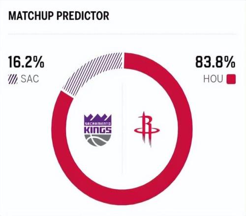 賽前,美媒ESPN對本場比賽進行了勝率預(yù)測,火箭隊勝率依舊高達83.8%,國王勝率則僅有16.2% ,差距明顯。