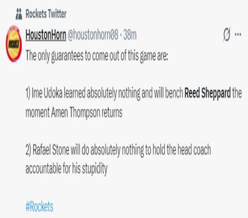 1.烏多卡什么都沒學到,等阿門-湯普森回歸后,他就會把里德-謝潑德安排到替補席上;