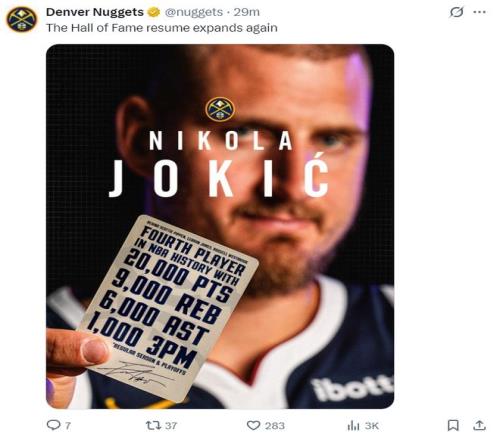 歷史第四人!約基奇連續(xù)三場30+無愧聯(lián)盟一哥NBA官方:不可阻擋