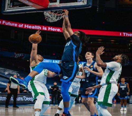 摩西-布朗,身高2米18的大中鋒,2019年的NBA落選秀,在開拓者、雷霆、快船等多支球隊效力過。布朗20-21賽季在雷霆隊場均出戰(zhàn)21分鐘,可以得到8.6分8.9籃板1.1蓋帽,數(shù)據(jù)還可以,其中在對陣凱爾特人的比賽中拿到21分23籃板的大號兩雙。上賽季在獨行俠隊打了4場比賽,場均可以得到11.8分7.8籃板。休賽期和掘金隊簽下了一份訓練營合同,但隨后掘金隊裁掉了布朗。布朗大部分時間在NBA發(fā)展聯(lián)盟打球,在發(fā)展聯(lián)盟單場轟下過27分26籃板4蓋帽的恐怖數(shù)據(jù)。