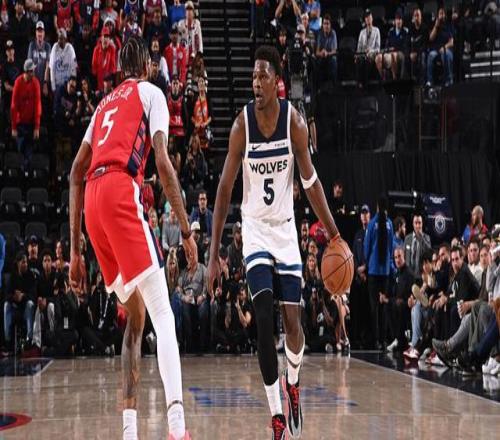森林狼方面,愛德華茲31分5助攻,迪溫琴佐18分,麥克丹尼爾斯12分7籃板3搶斷??齑瑐惣{德缺陣,小瓊斯18分,馬圖林14分6籃板,鄧恩11分6籃板7助攻。