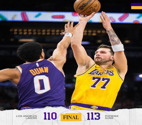 NBA常規(guī)賽繼續(xù)進(jìn)行,洛杉磯湖人隊(duì)(34勝24負(fù))繼續(xù)連敗。雖然東契奇得到41分、8個(gè)籃板和8次助攻,他率隊(duì)第四節(jié)化解兩位數(shù)落后追平,但奧尼爾投中三分準(zhǔn)絕殺,里夫斯錯(cuò)失扳平三分,湖人隊(duì)在客場(chǎng)以110-113不敵菲尼克斯太陽(yáng)隊(duì)(34勝26負(fù))。太陽(yáng)隊(duì)結(jié)束2連敗,湖人隊(duì)遭遇3連敗。
